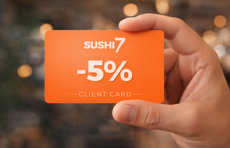 You can now join the Sushi7 loyalty program and enjoy a 5% discount on every visit! Customer card fee: €7.