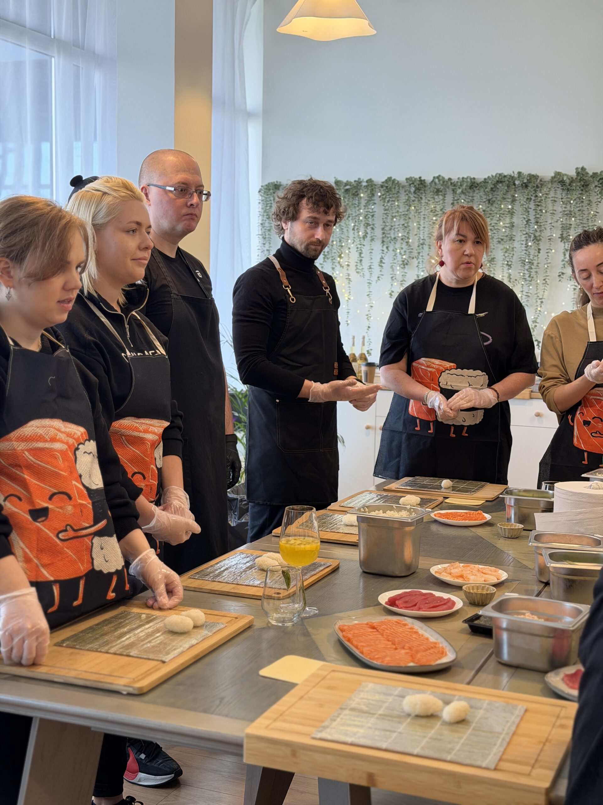 During the 2-hour session, participants immersed themselves in the world of Japanese cuisine: first learning the basics — ingredients, rice preparation techniques, and roll assembly principles — and then moving on to hands-on practice.
